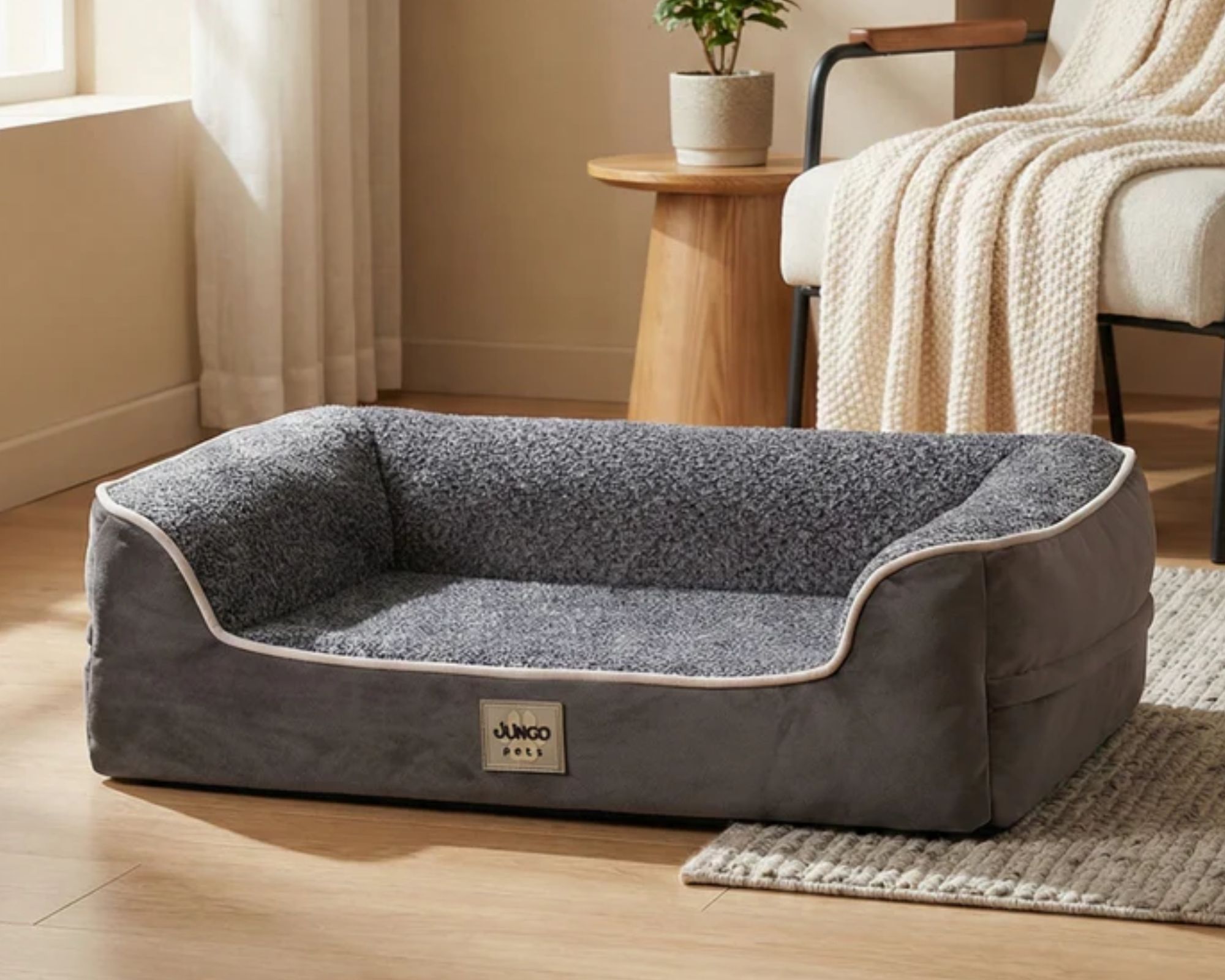 Dieses Design gibt Ihrem Hund Sicherheit und ermöglicht ihm eine bessere Schlafposition. Die Stützkonstruktion trägt außerdem dazu bei, dass Ihr Hund in kühleren Nächten nicht überhitzt.