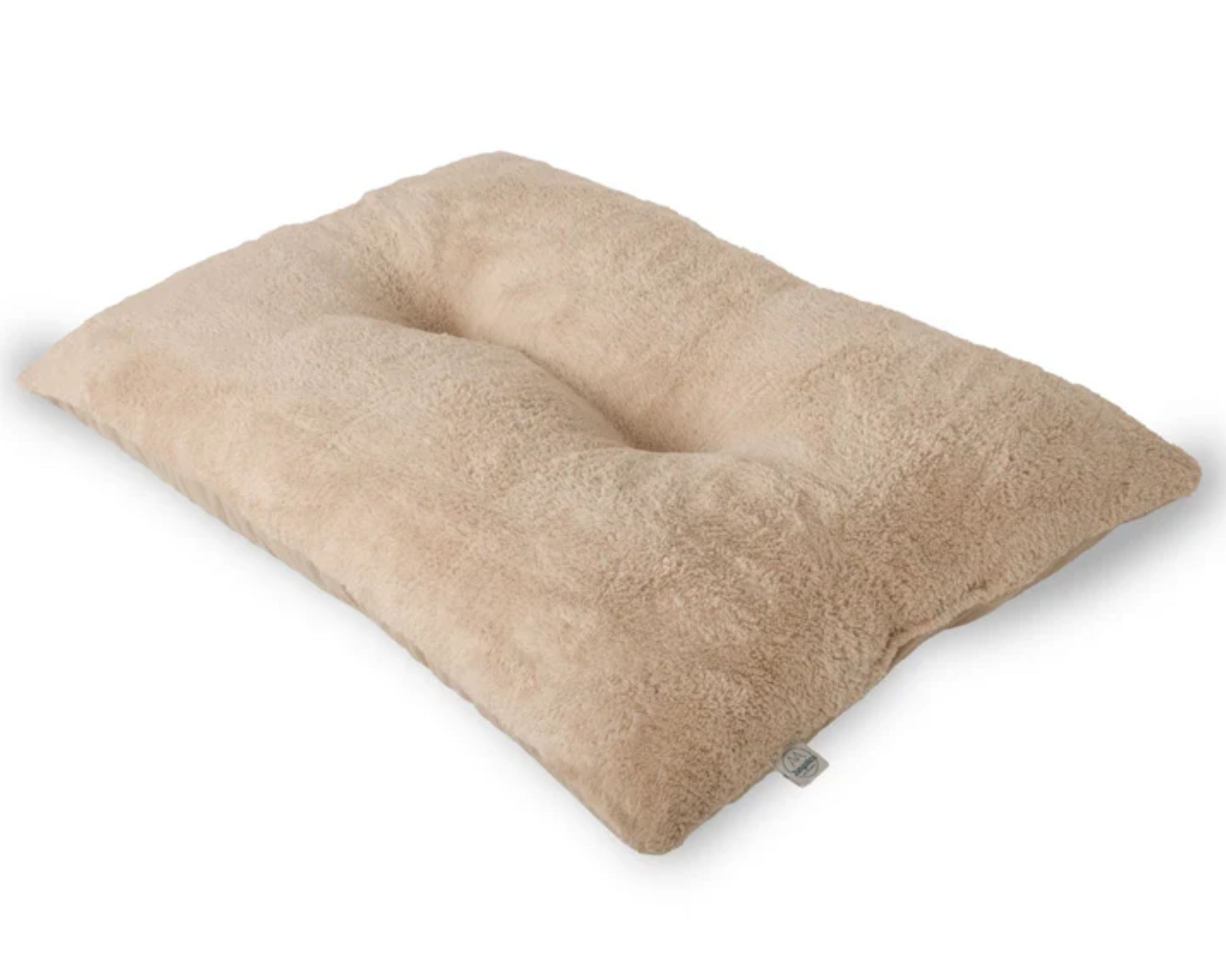 Eine Seite ist mit weichem, kuscheligem Stoff bezogen, die andere mit Strickgewebe.